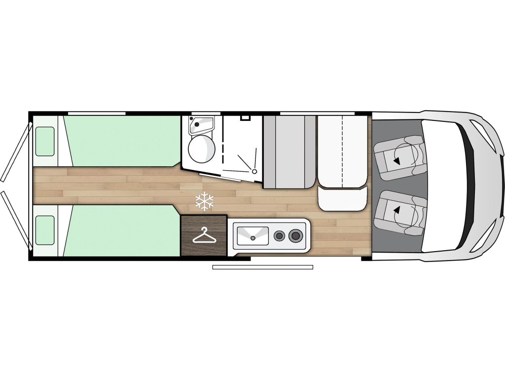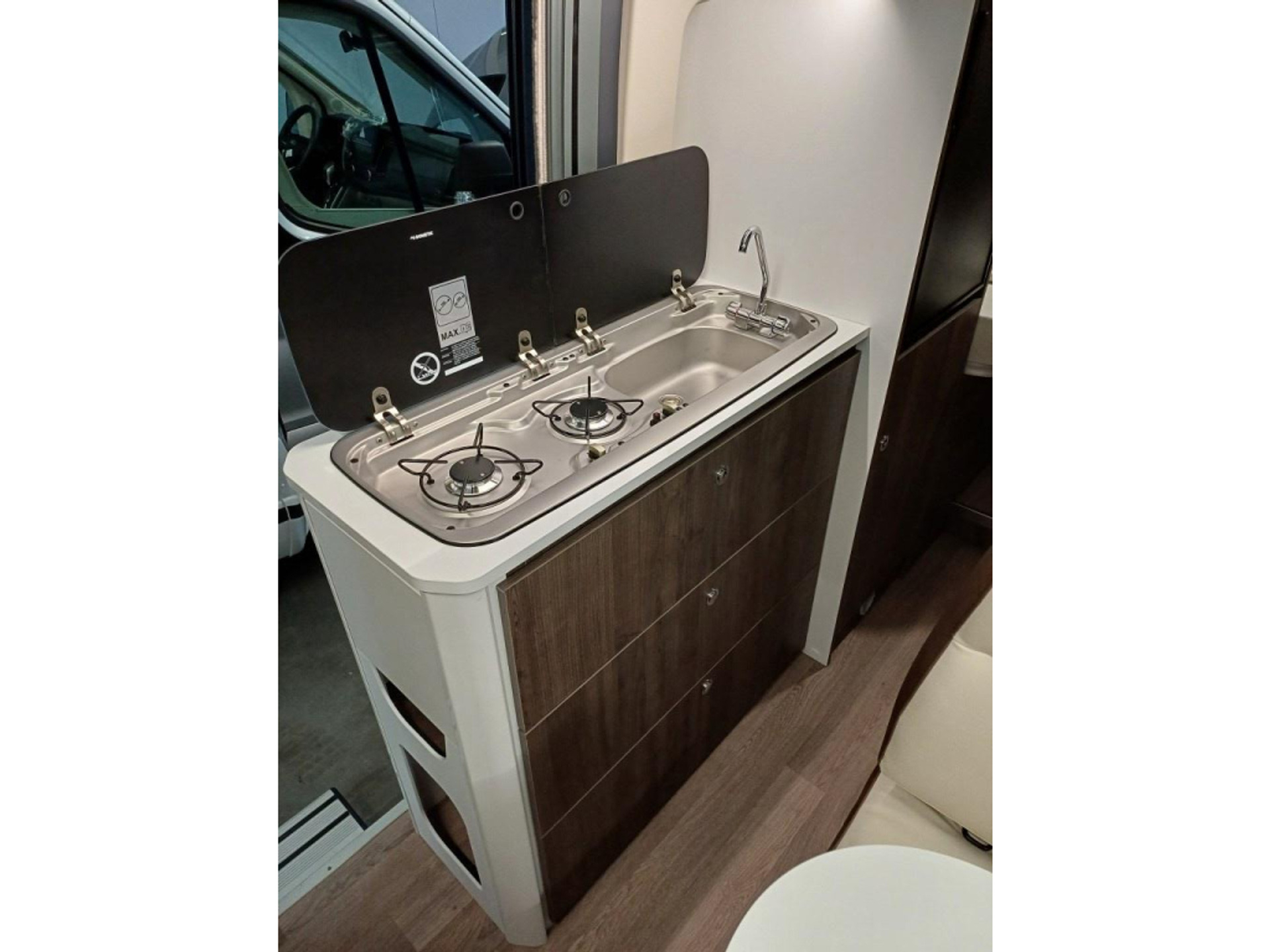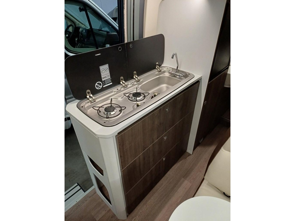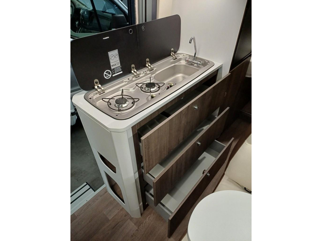 • 2-pits RVS gasstel en een 84L compressor koelkast
