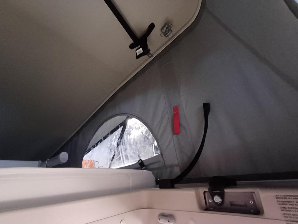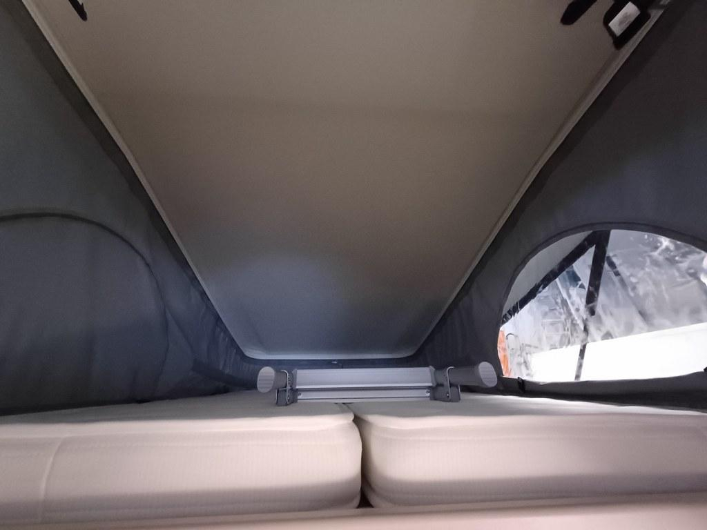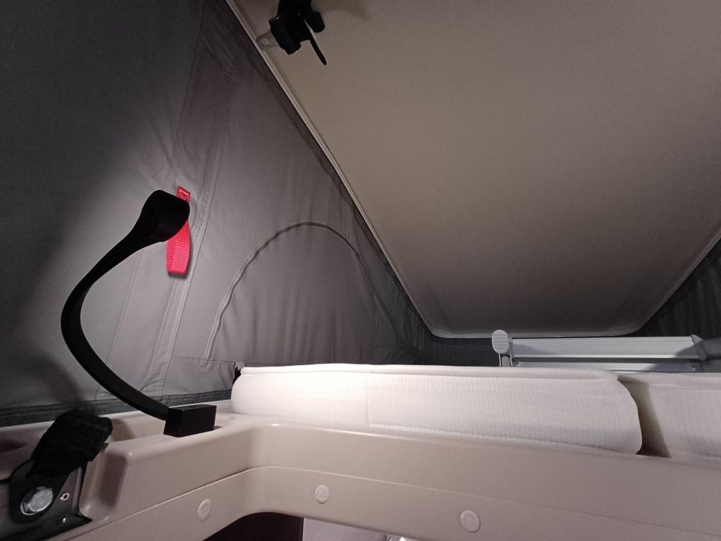 Deze buscamper is uitgerust net een comfortabel hefdak voor 2 personen.