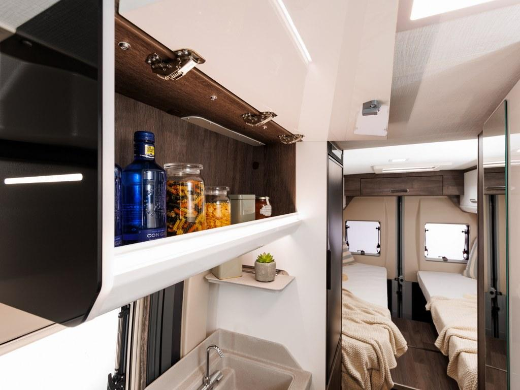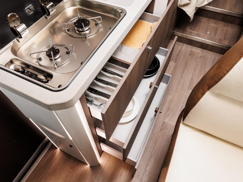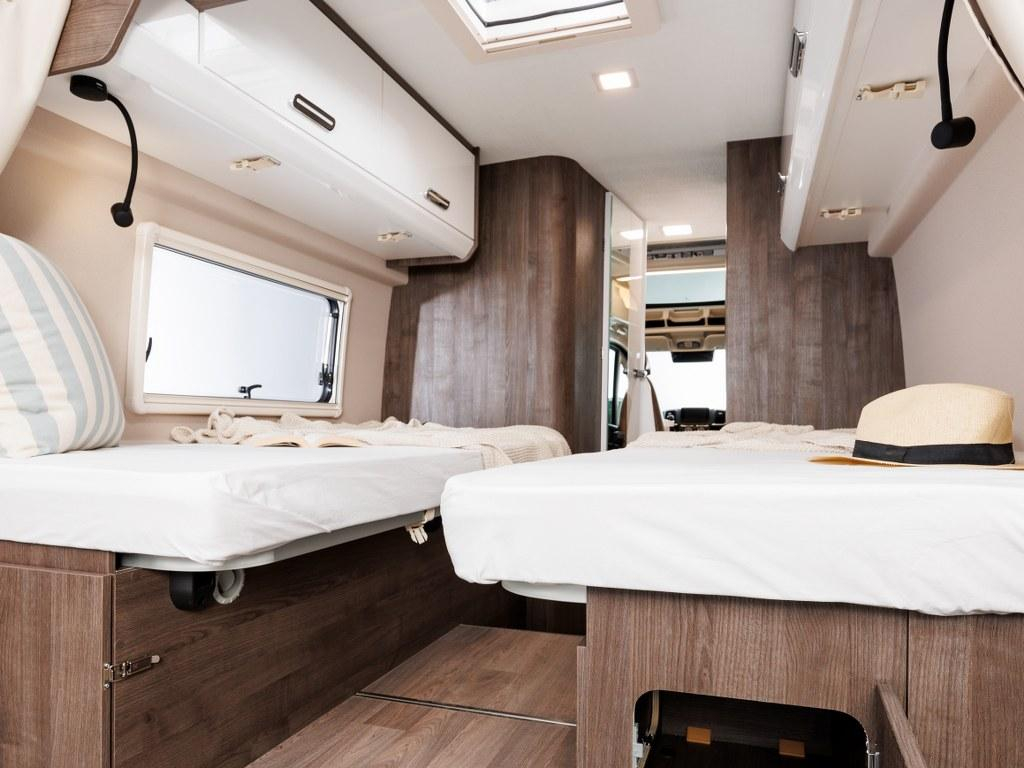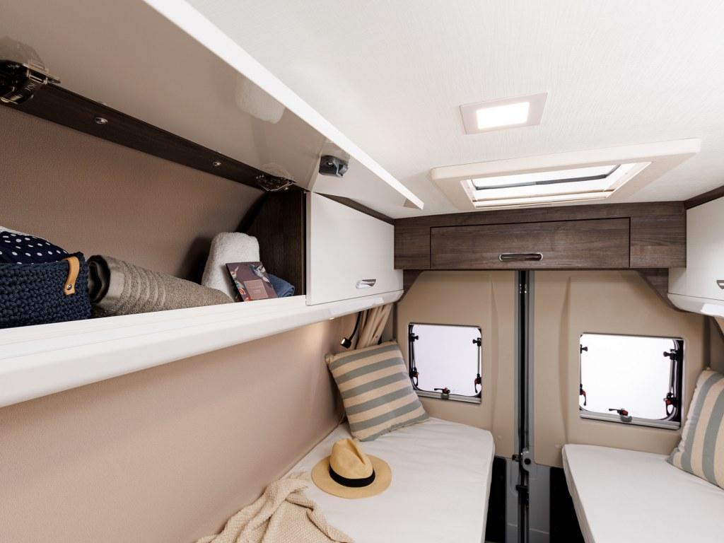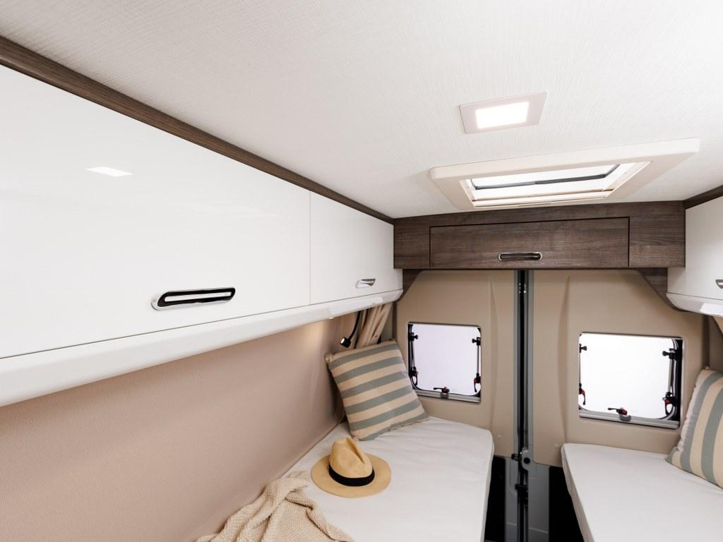 • Afneembare kussenhoezen en vloerbedekking cabine