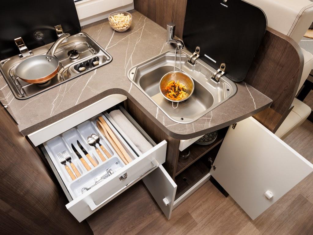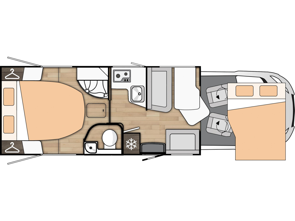 • Hoogwaardige Dometic D-LUX inbouwramen voorzien van hor en verduistering