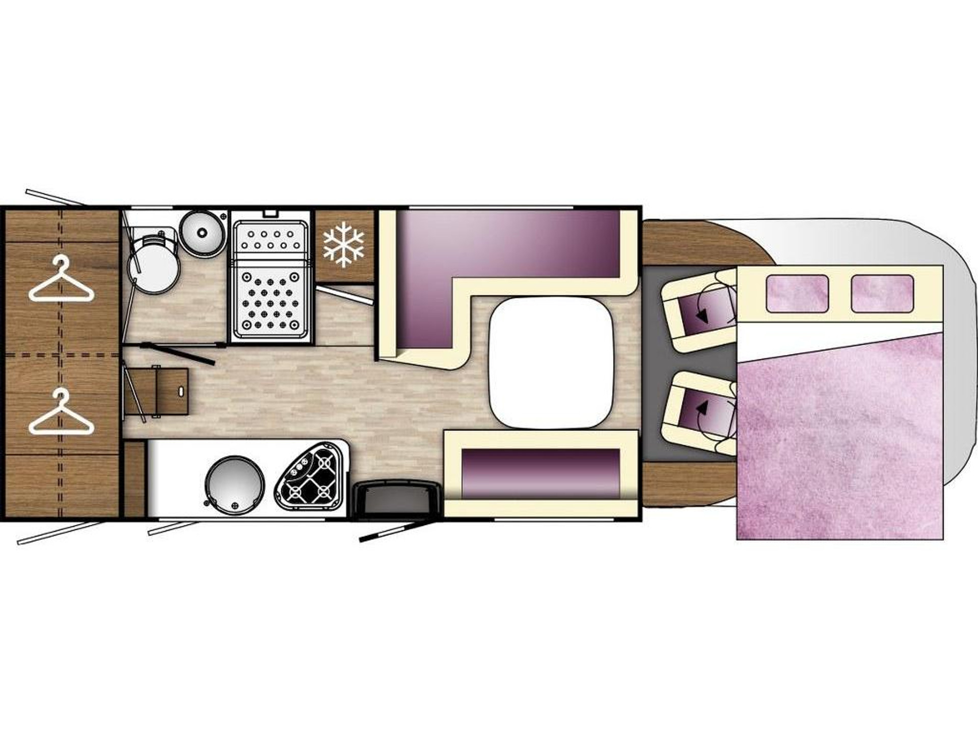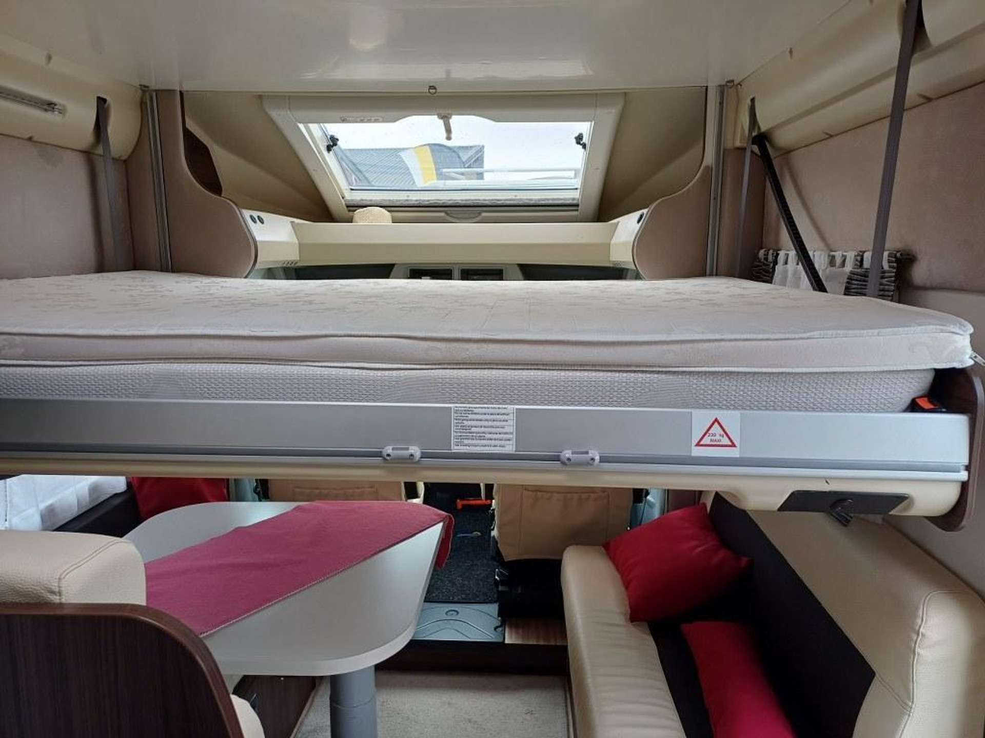 Boven de zitgroep is een hefbed voor 2 personenen, van de zitgroep kan een bed worden gemaakt voor 2 personen. De camper biedt voor 4 personen een slaap plek.