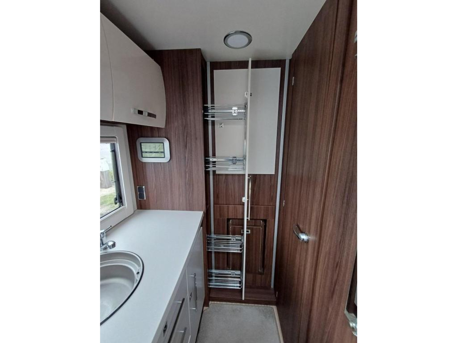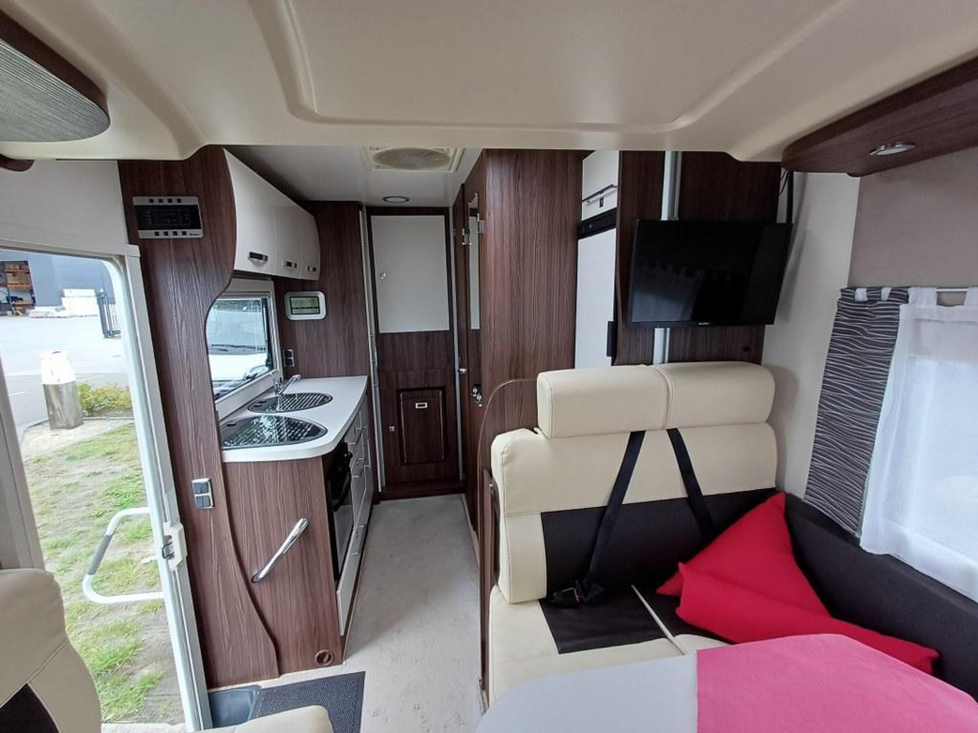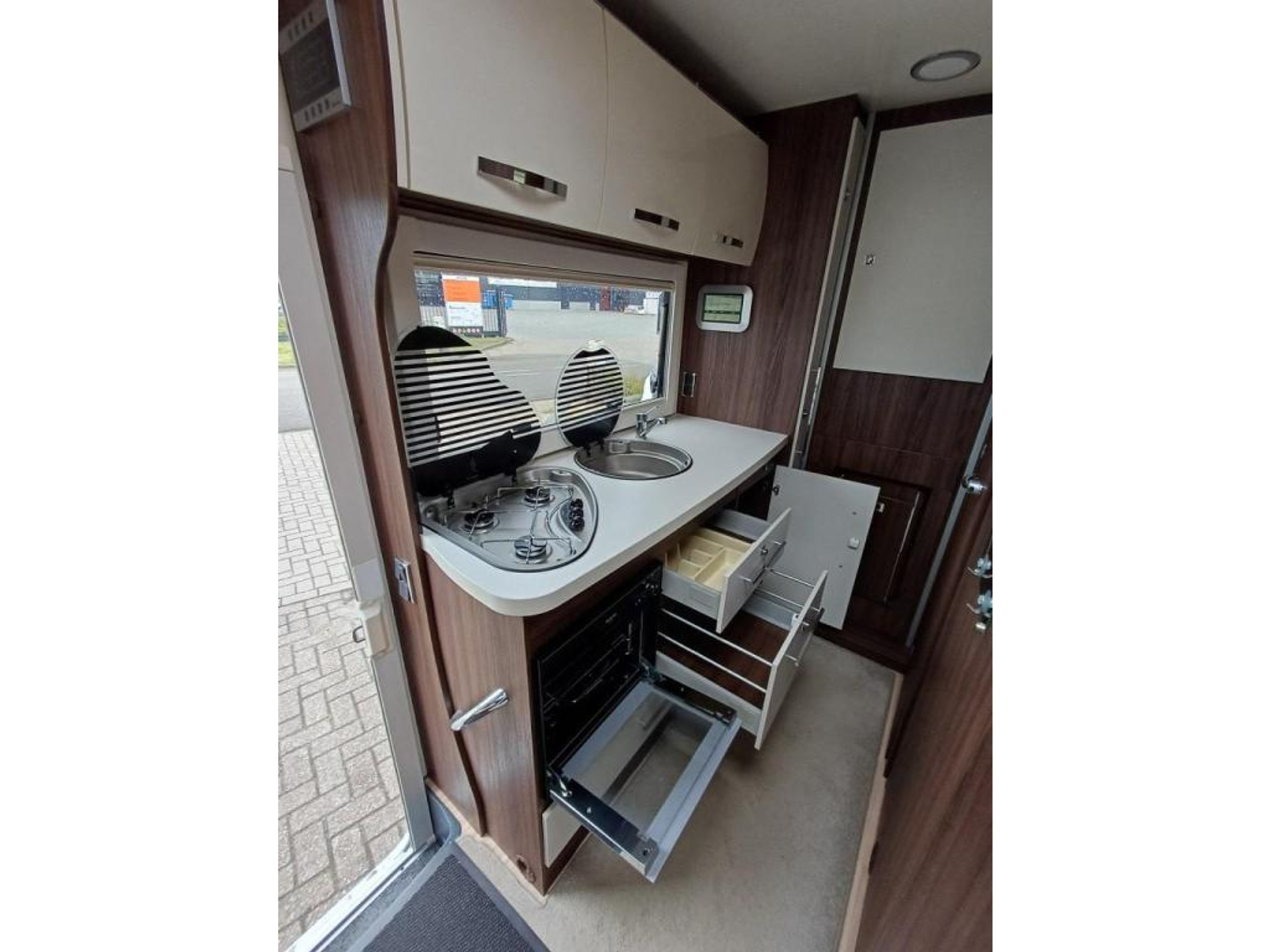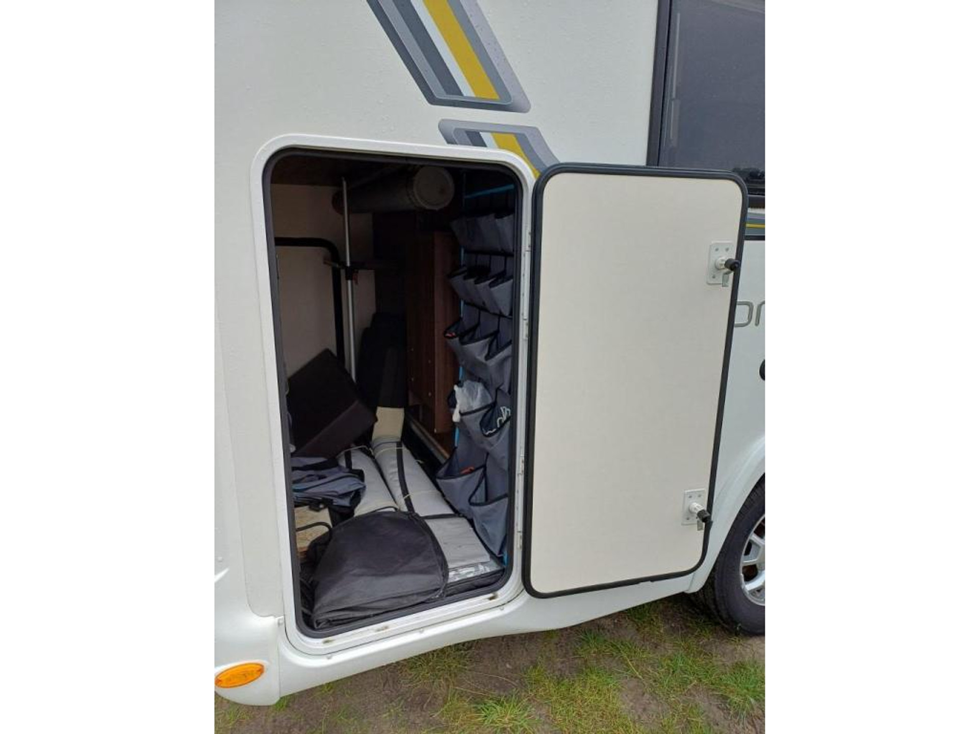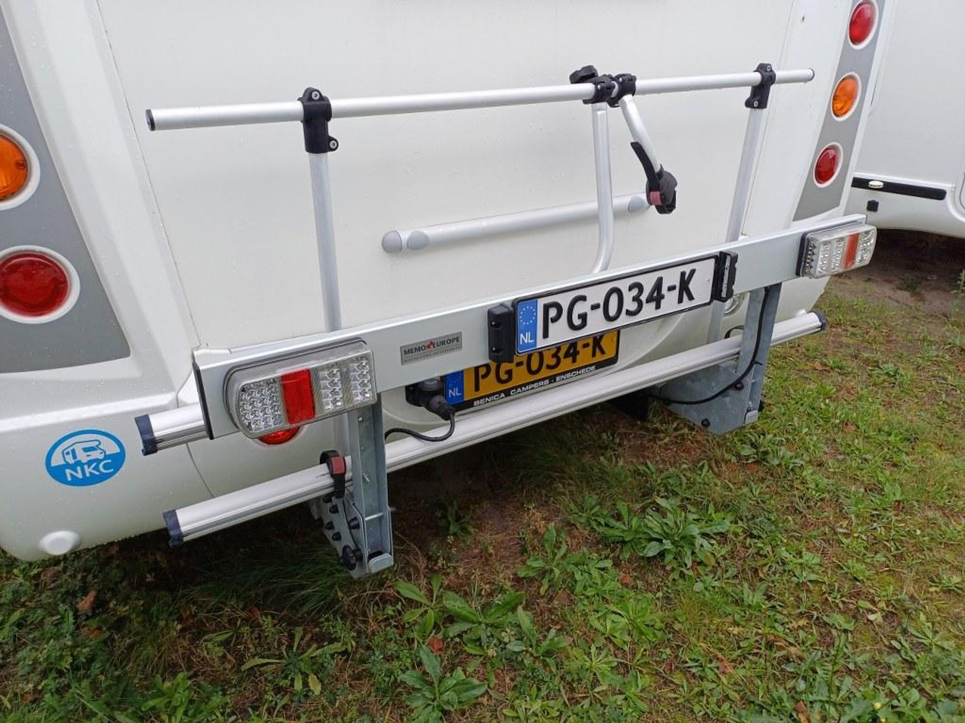 HPC-levelsysteem, 24" HD tv en schotel, zonnepaneel, Thule luifel met Rainblockers en een sunblocker, ventilatie dakluik, fietsendrager op het chassis, lpg-gasfles met buitenvuller en een Lithium accu.