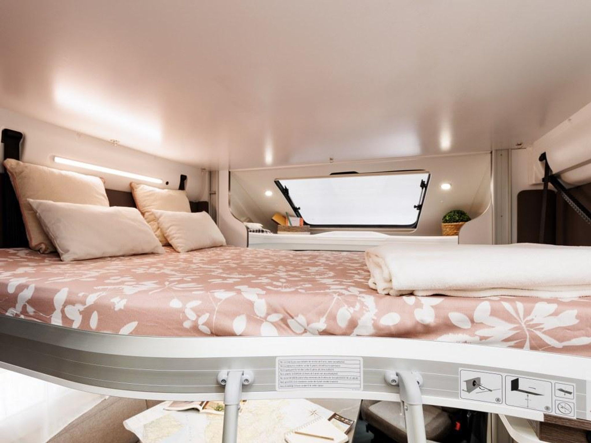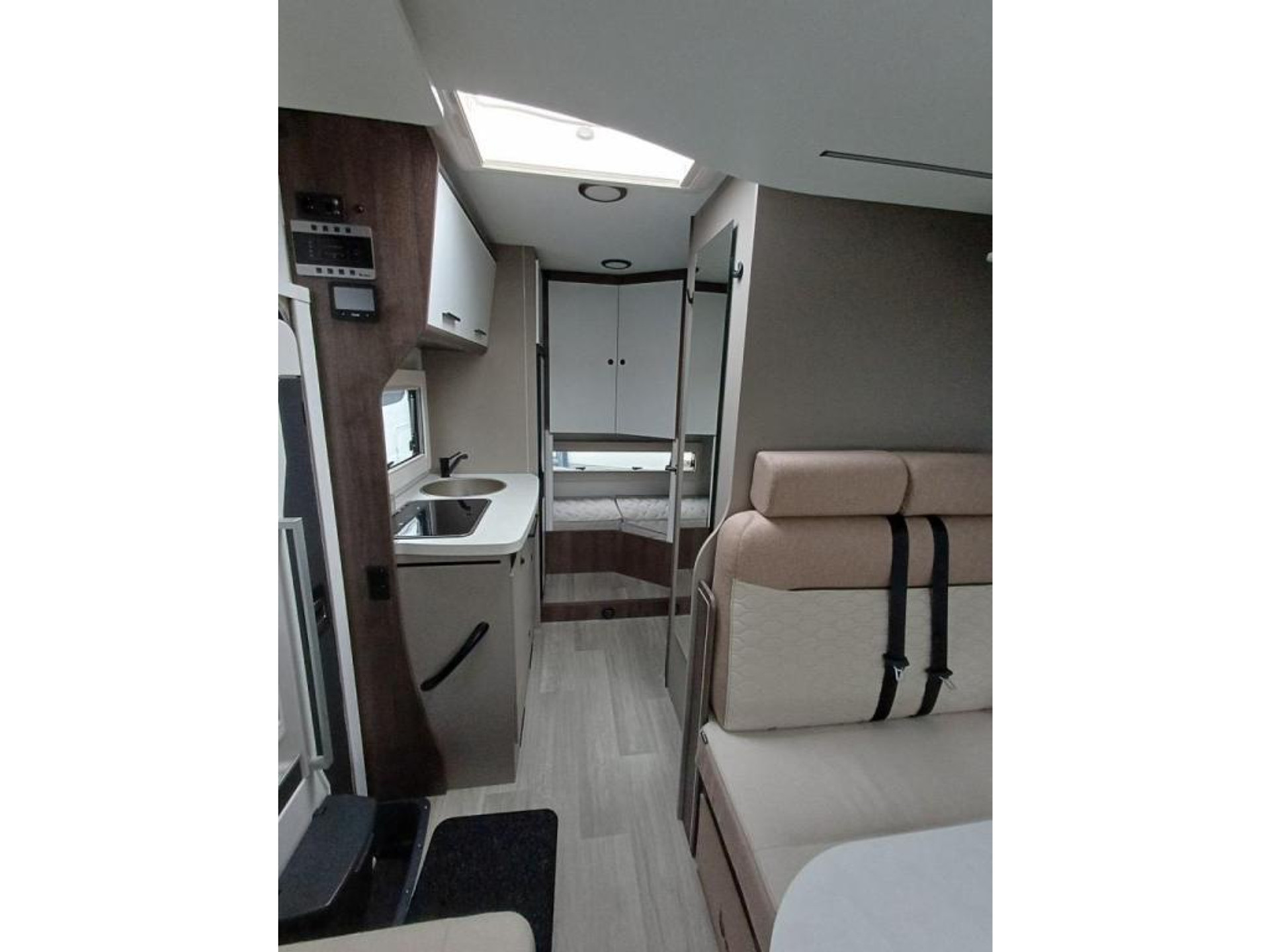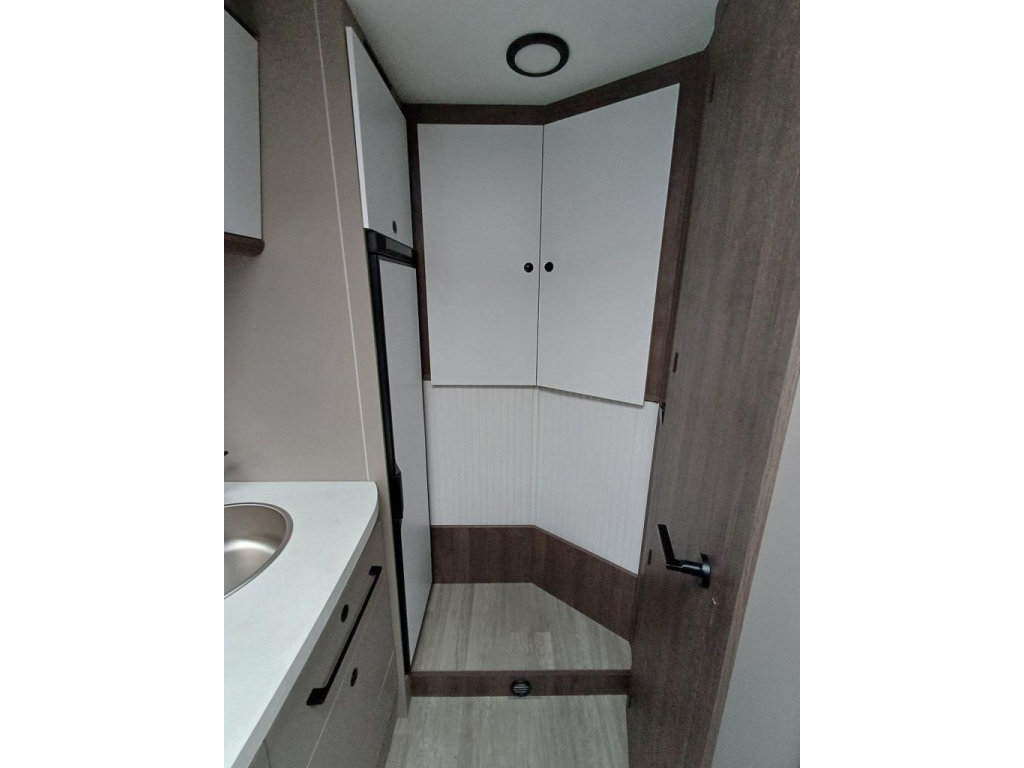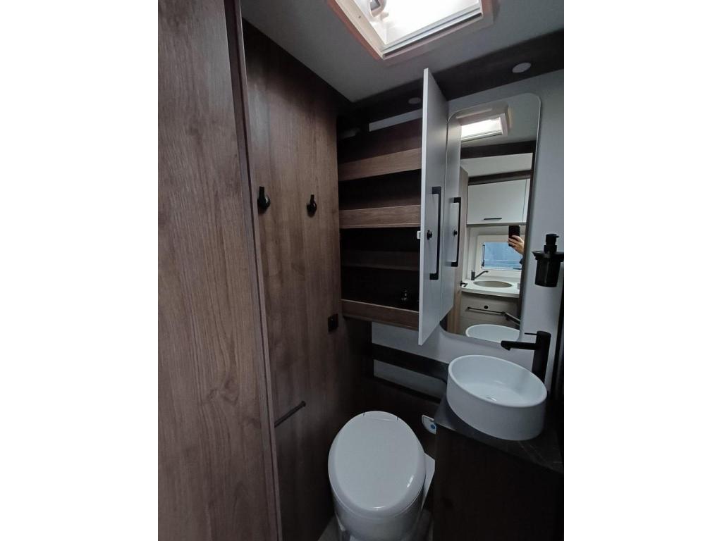 PLUS PAKKET: Voorbumper in kleur van cabine + Halogeenverlichting en hoekspot + Luxe plissé verduistering in de cabine + Dashboard met chroom accenten + Handschoenenkastje met slot + Cabinestoelen bijpassend bekleed bij zitbanken + Skyview dakraam met hor en verduistering + LED buitenlamp + Extra brede camperdeur met dubbele veiligheidssluiting, raam, hordeur en prullenbak + Achteruitrijdsensoren + Zonnepaneel 200 W met MPPT-regelaar + Voorbereiding voor 2e accu + Bovenkasten met (in)directe LED-verlichting + Stoffen rolgordijn + Dinnette-stoelen met ISOFIX + TV steun