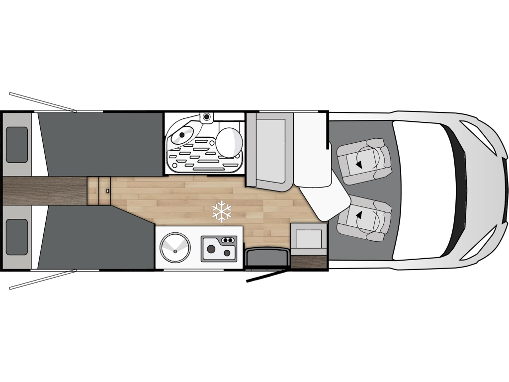WINTER PAKKET: Geïsoleerde en verwarmde vuilwatertank, geïsoleerde instap, isolatiemat voor cabineramen buitenom, sterkere Webasto 5500W diesel verwarming met extra isolaties om externe leidingen (alleen i.c.m. PLUS PAKKET)
