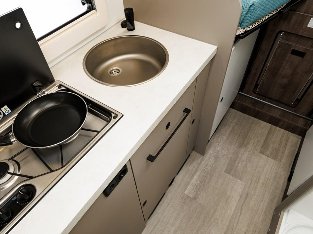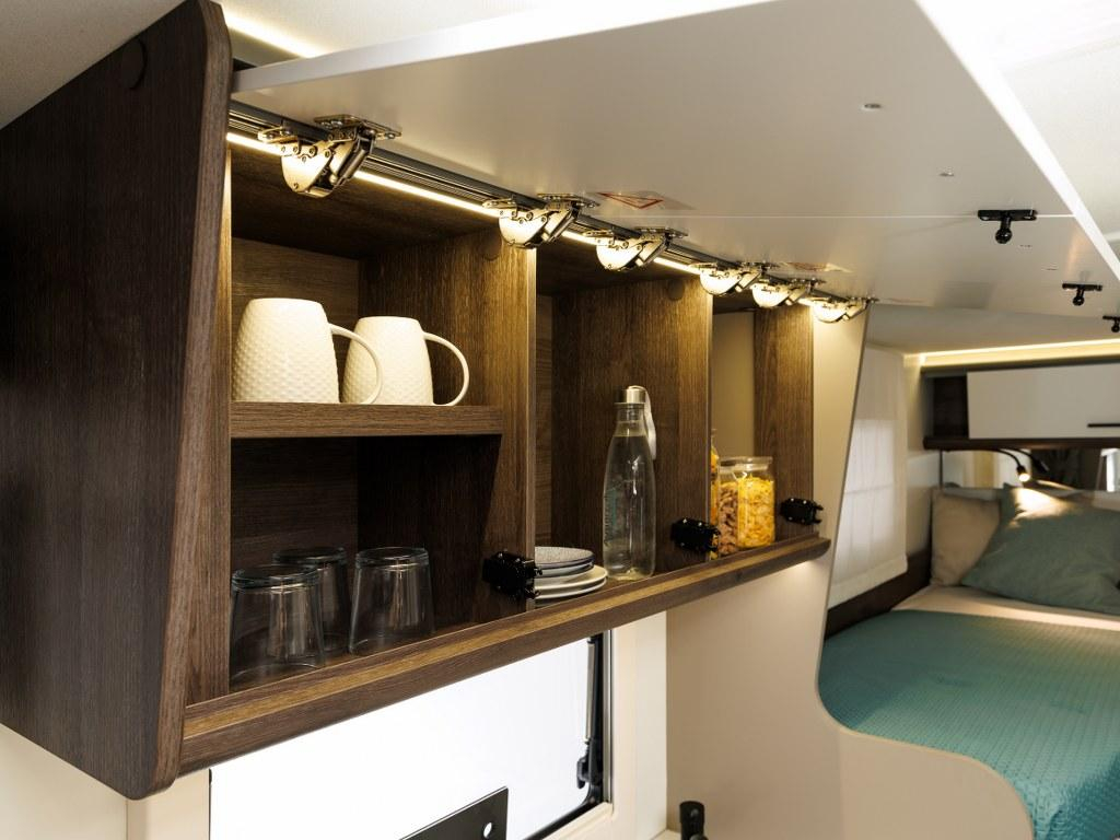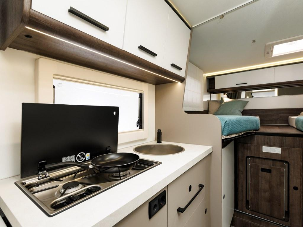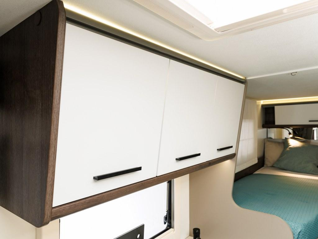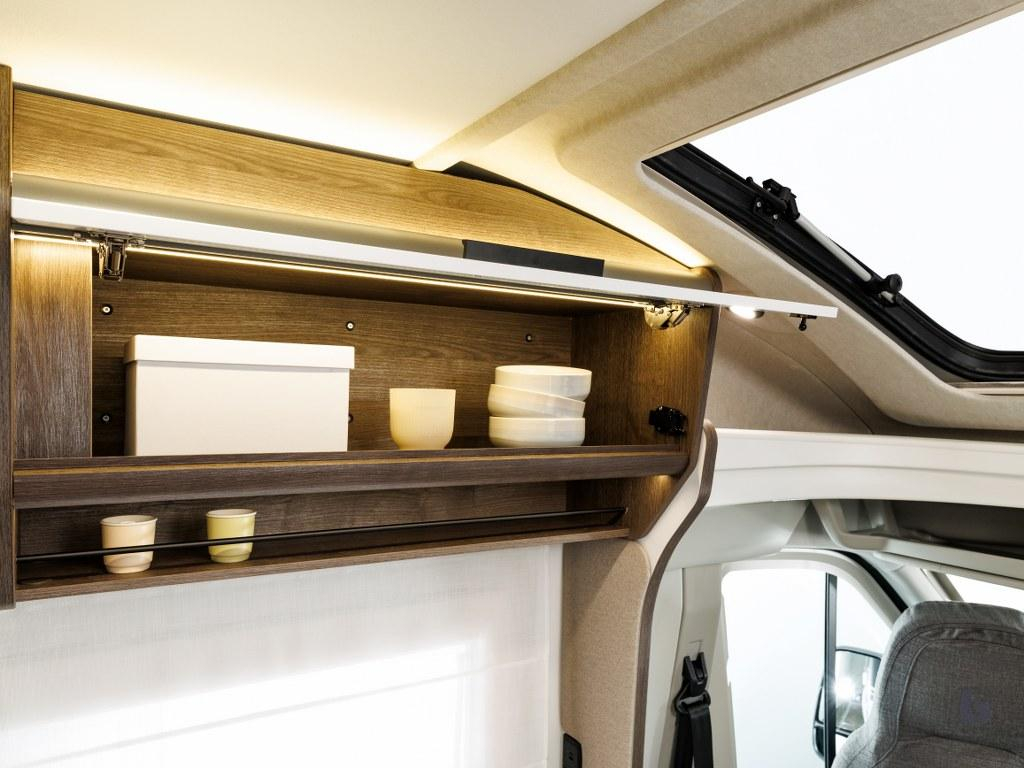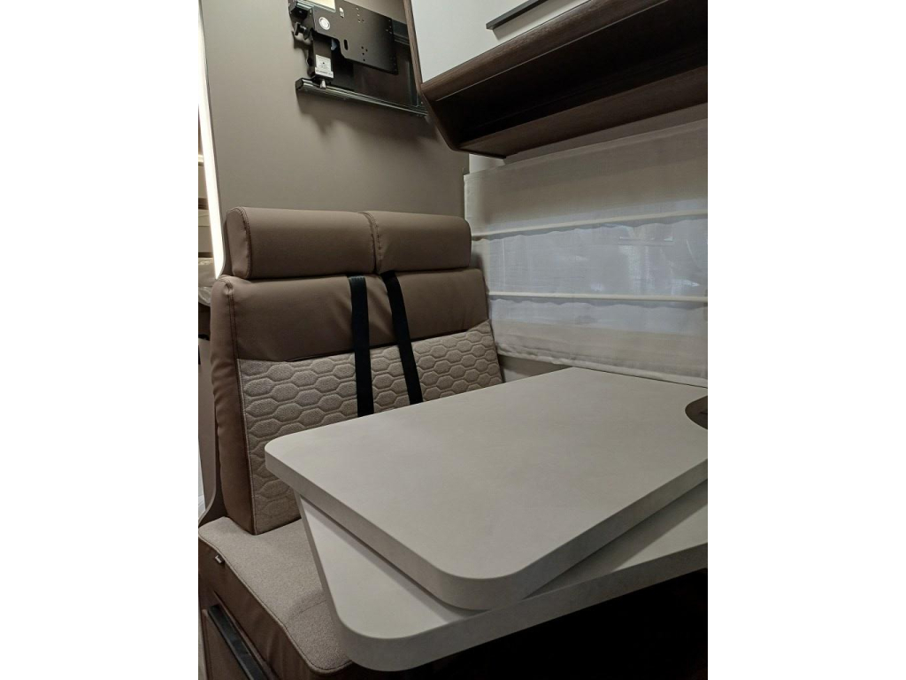PLUS PAKKET: achteruitrijsensoren, TV-beugel, voorbereiding 2e woonaccu, Skyview panorama dakluik, camperdeur met centrale dubbele sluiting, raam, afvalbak en plisséhor, 200W solarsysteem + MPPT regelaar, afsluitbaar dashboardkastje, LED buitenverlichting, verduisteringsplissés rondom + stoelhoezen (in bijpassende bekleding) in cabine, halogeen bochtverlichting, Isofix, stoot- en zijlijsten in cabinekleur gespoten, dashboard "Trend"