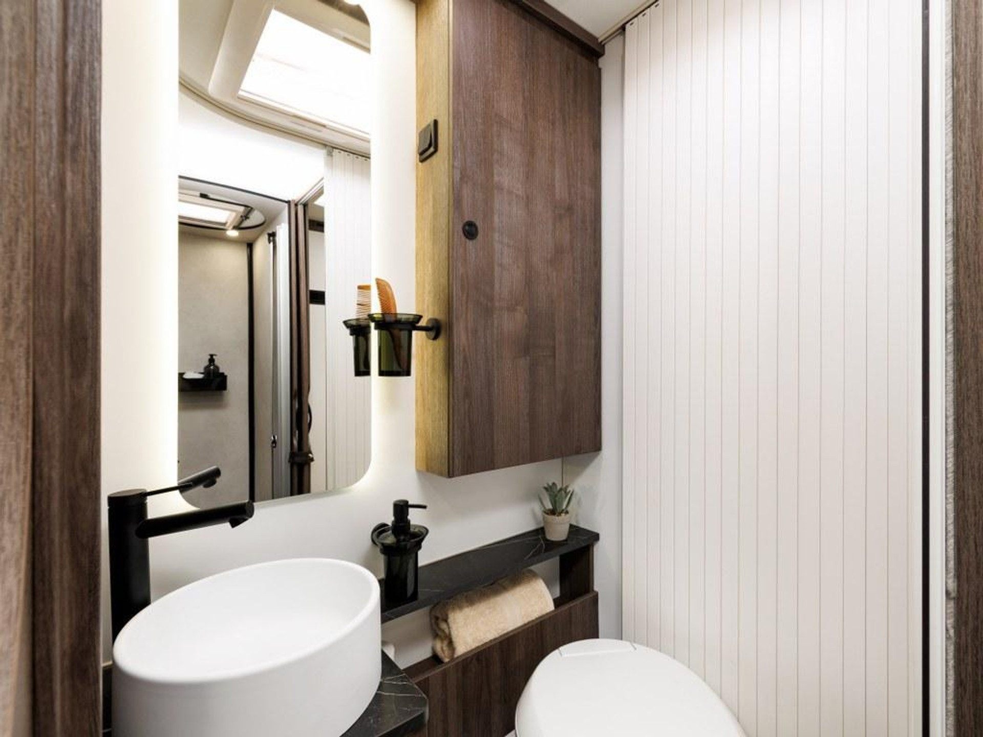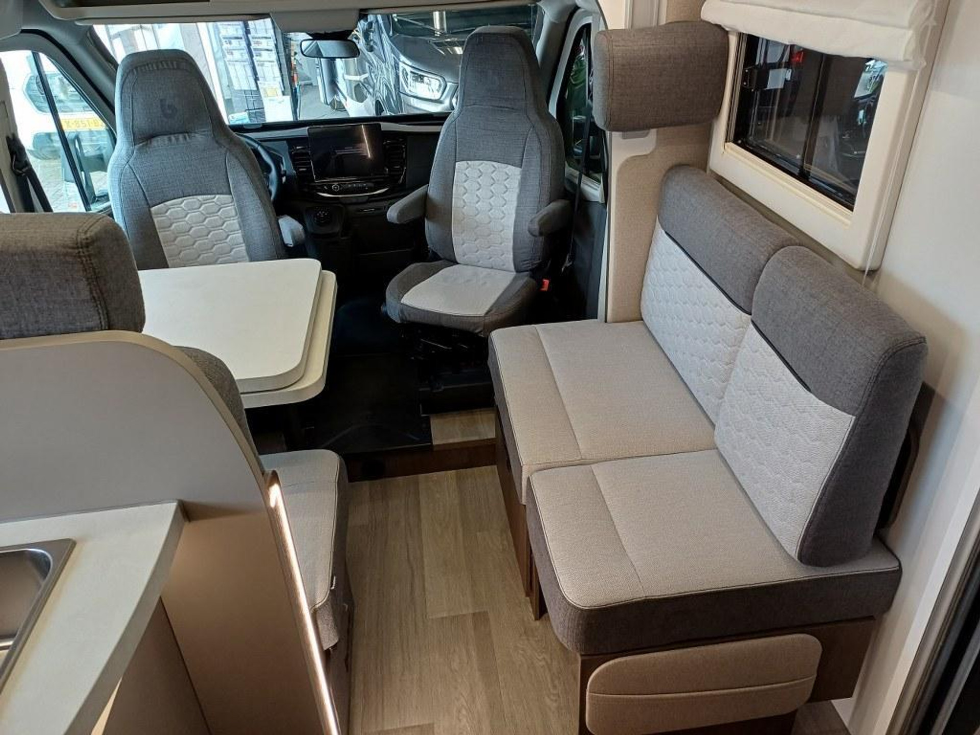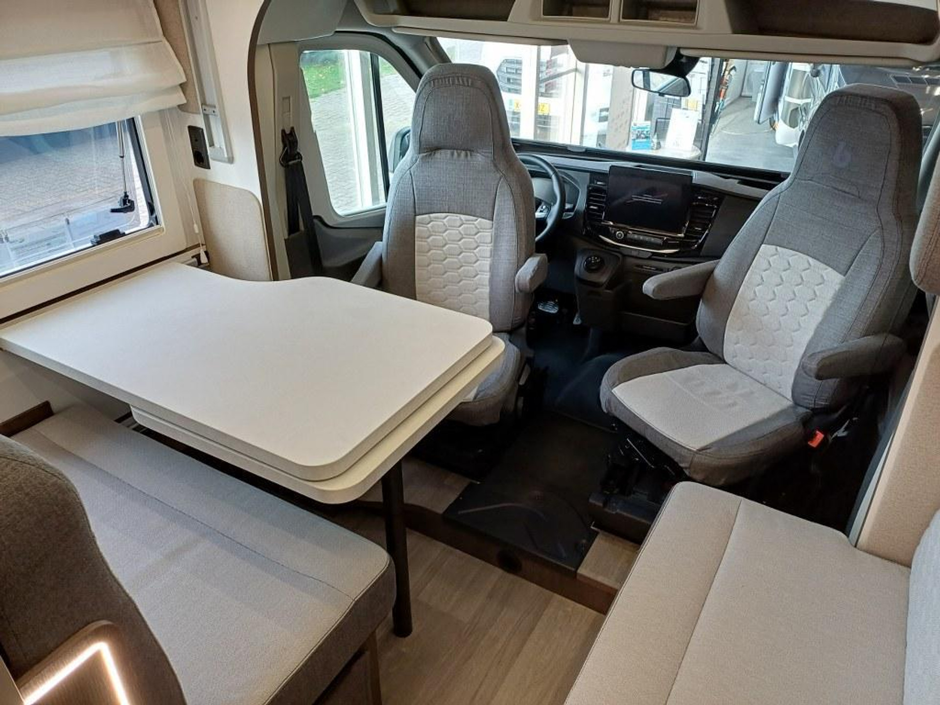 PLUS PAKKET: Voorbumper in kleur van cabine + Halogeenverlichting en hoekspot + Luxe plissé verduistering in de cabine + Dashboard met chroom accenten + Handschoenenkastje met slot + Cabinestoelen bijpassend bekleed bij zitbanken + Skyview dakraam met hor en verduistering + LED buitenlamp + Extra brede camperdeur met dubbele veiligheidssluiting, raam, hordeur en prullenbak + Achteruitrijdsensoren + Zonnepaneel 200 W met MPPT-regelaar + Voorbereiding voor 2e accu + Bovenkasten met (in)directe LED-verlichting + Stoffen rolgordijn + Dinnette-stoelen met ISOFIX + TV steun