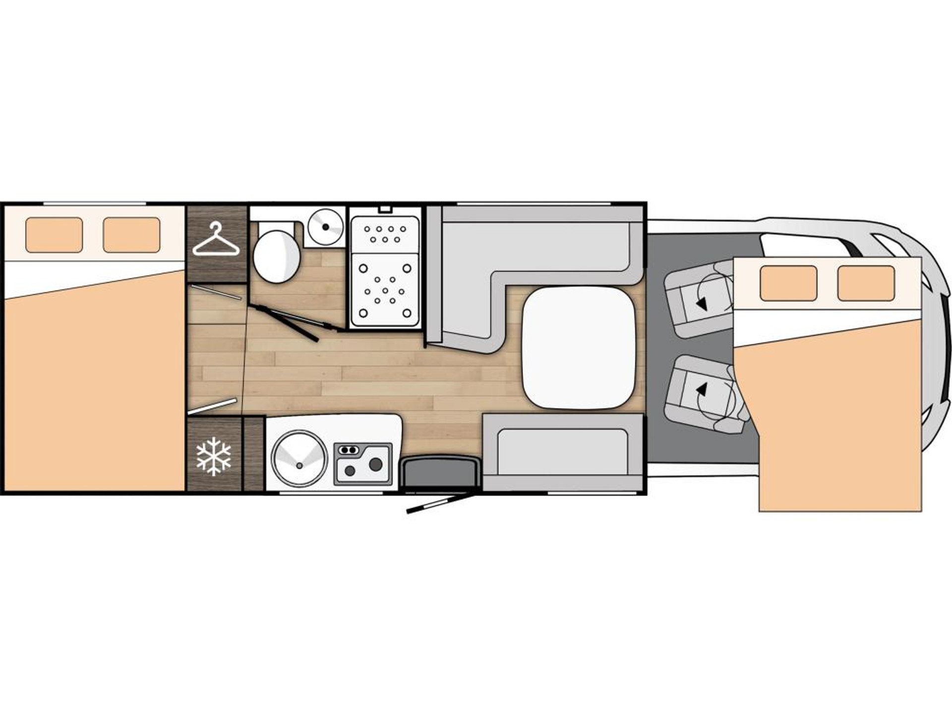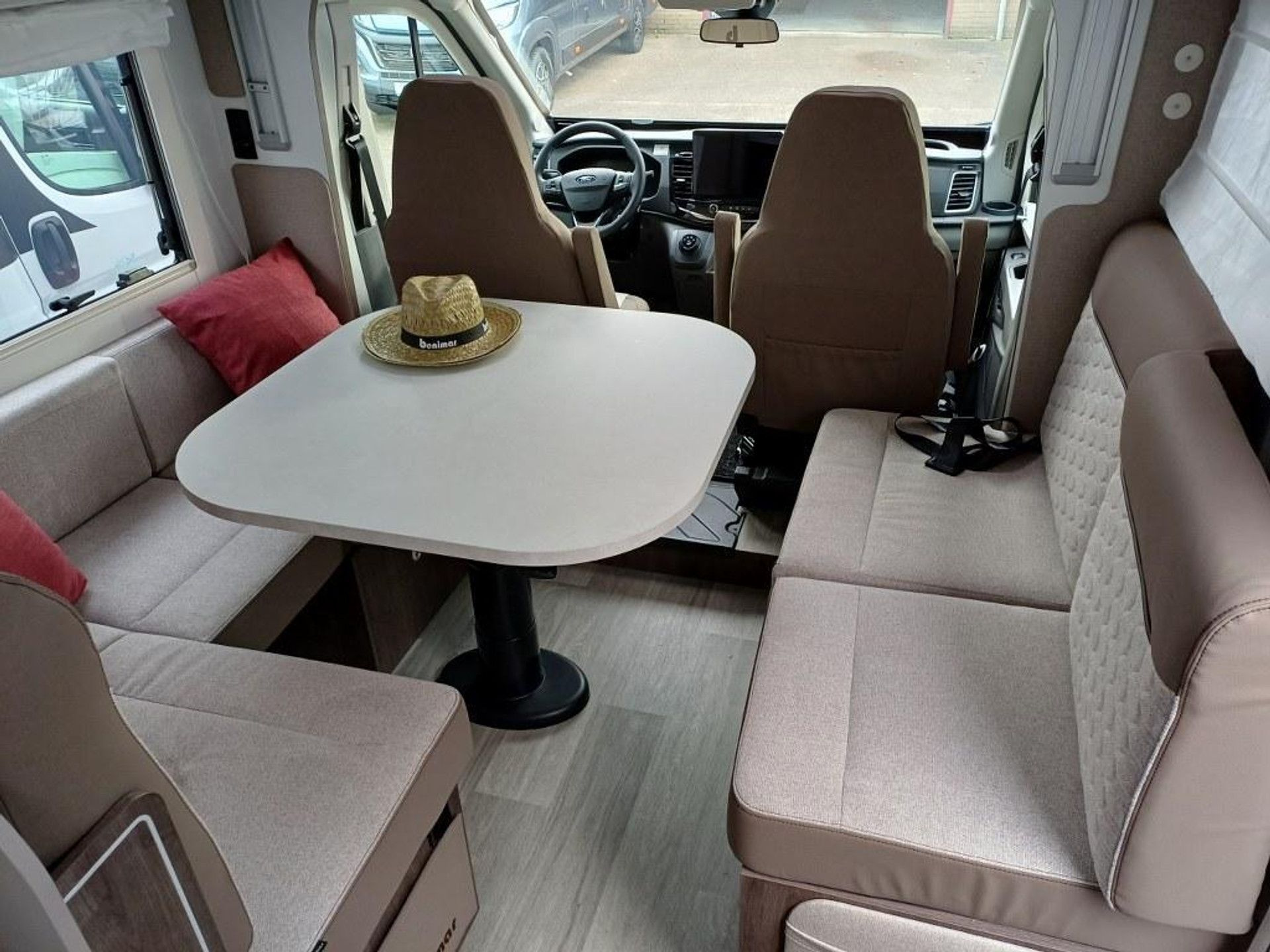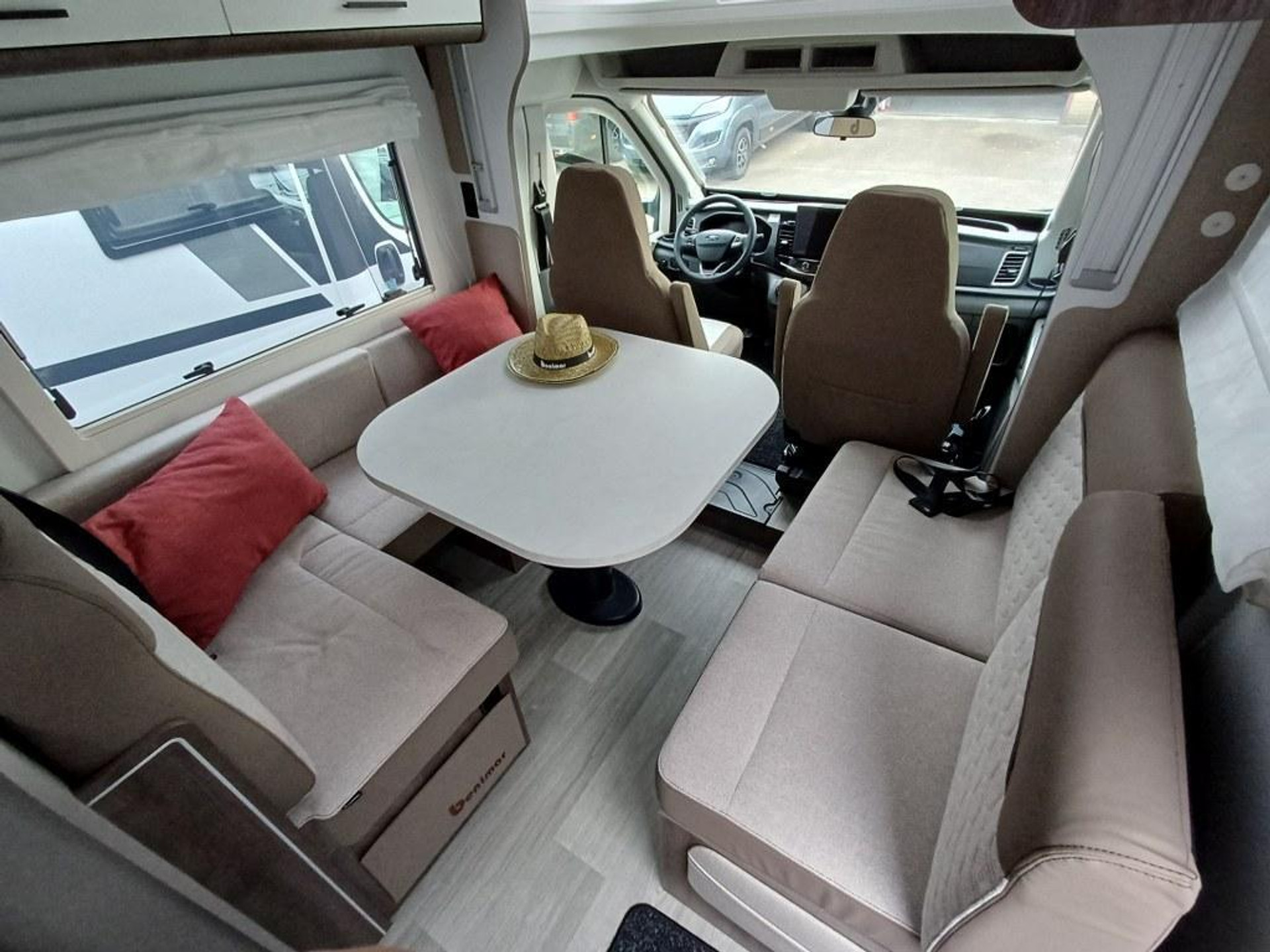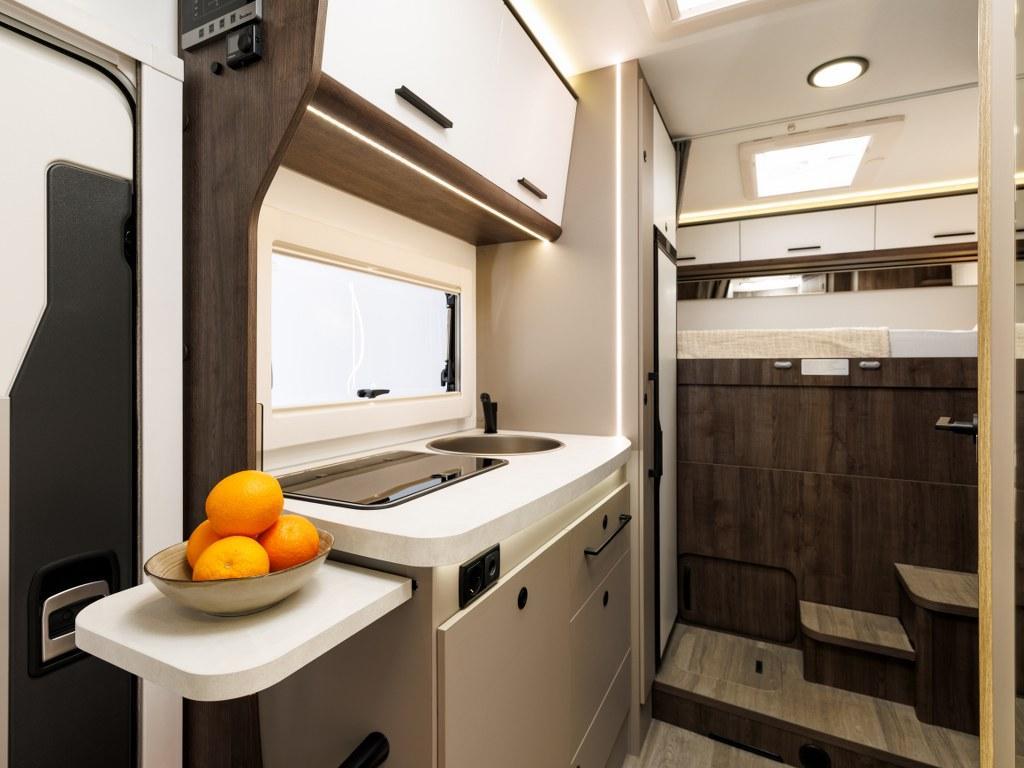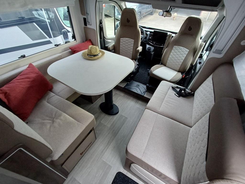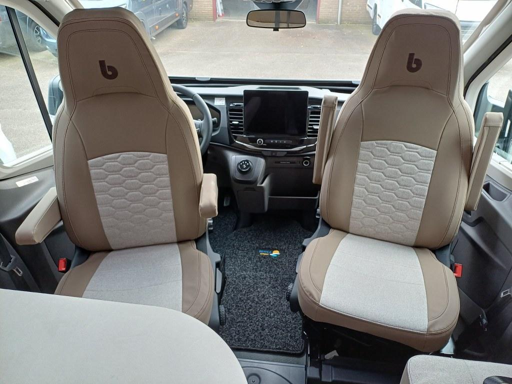 PLUS PAKKET: Voorbumper in kleur van cabine + Halogeenverlichting en hoekspot + Luxe plissé verduistering in de cabine + Dashboard met chroom accenten + Handschoenenkastje met slot + Cabinestoelen bijpassend bekleed bij zitbanken + Skyview dakraam met hor en verduistering + LED buitenlamp + Extra brede camperdeur met dubbele veiligheidssluiting, raam, hordeur en prullenbak + Achteruitrijdsensoren + Zonnepaneel 200 W met MPPT-regelaar + Voorbereiding voor 2e accu + Bovenkasten met (in)directe LED-verlichting + Stoffen rolgordijn + Dinnette-stoelen met ISOFIX + TV steun