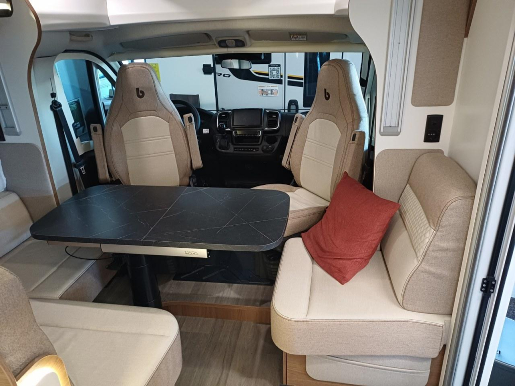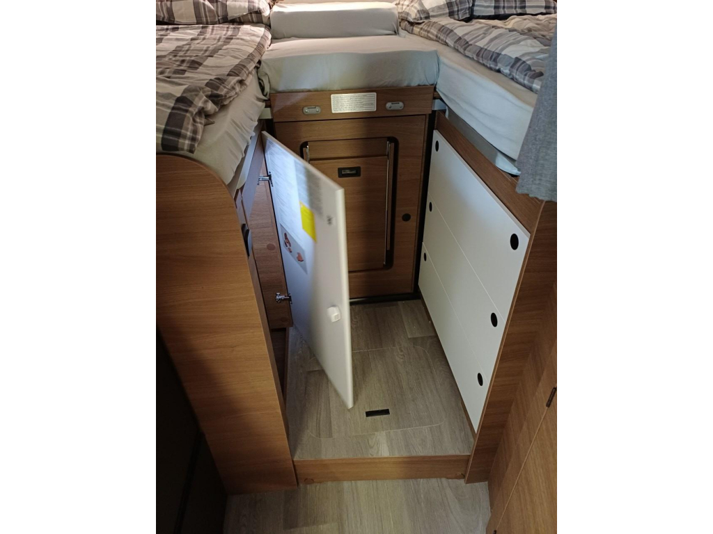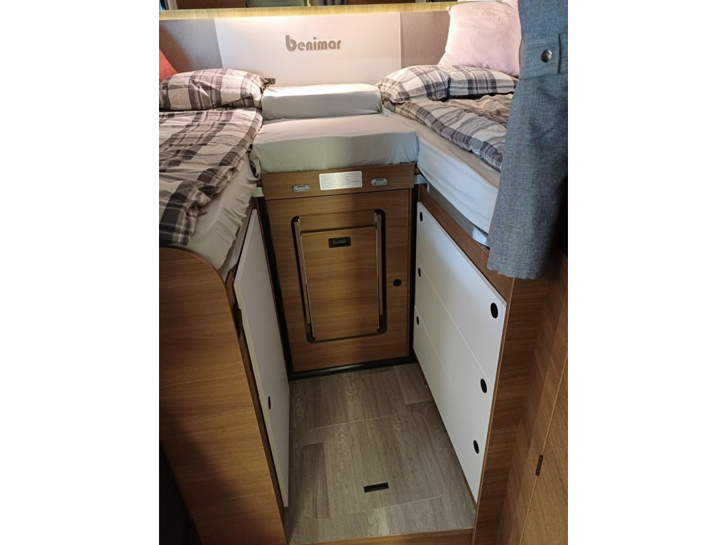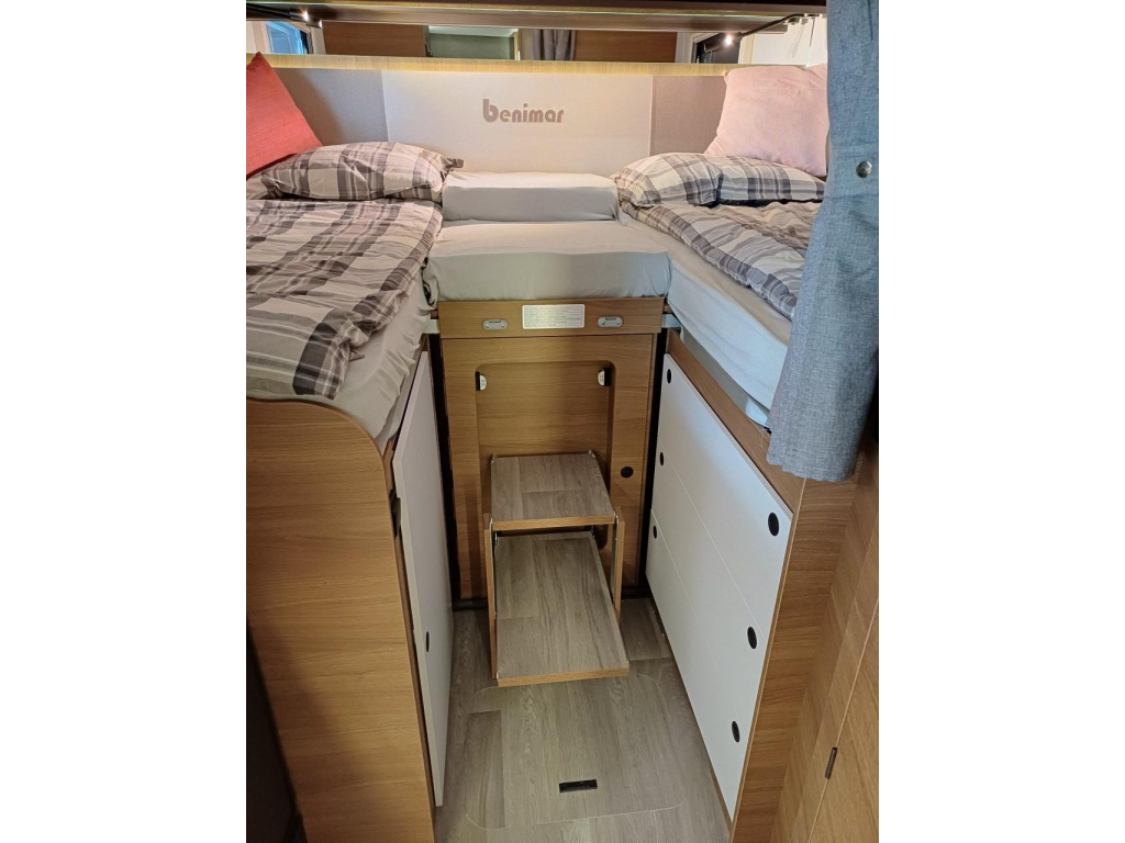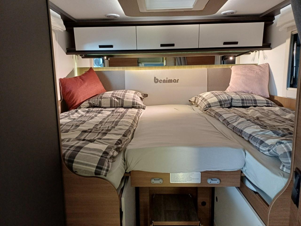 PLUS PAKKET: electr.handrem, 16"aluvelgen, leren stuur, dashboard met chroomdesign, achteruitrijsensoren, achteruitrijcamera, XL camperdeur met centrale dubbele sluiting, raam, afvalbak en plisséhor, 9"-DAB touch Pioneer, 200W solarsysteem + MPPT regelaar, LED buitenverlichting, verduisteringsplissé + stoelhoezen (in bijpassende bekleding) in cabine, afzuigkap, verlichting + rail en